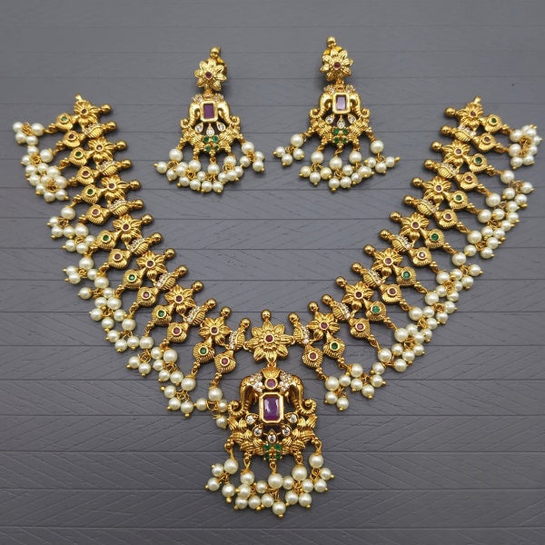 Elegant White & Green Stone Necklace Set